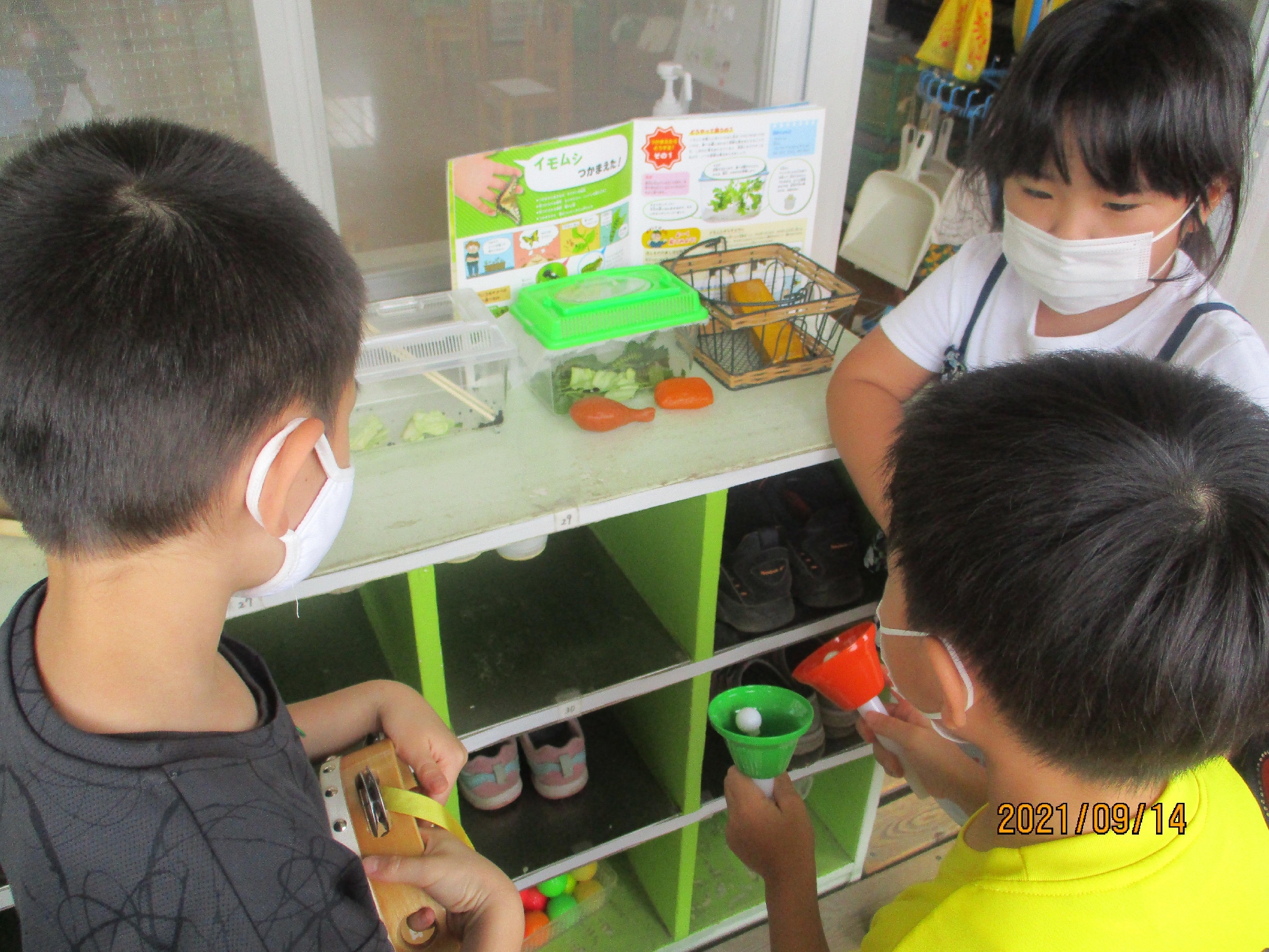 クラスで育てているメダカや、幼虫にも音をきかせたい!と観察している子もいます♪