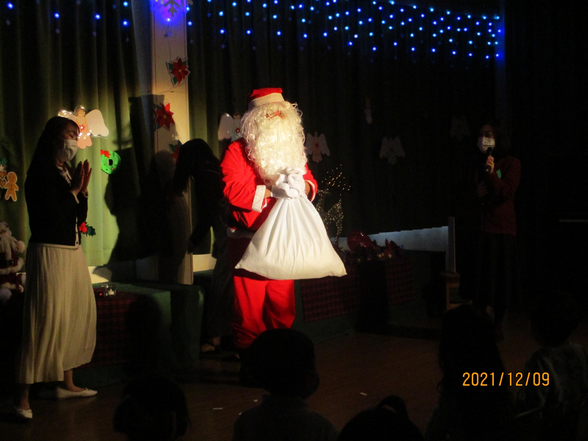 12/7(火)年長組、12/9(木)年少組、12/10(金)年中組がホールでクリスマス会をしました。