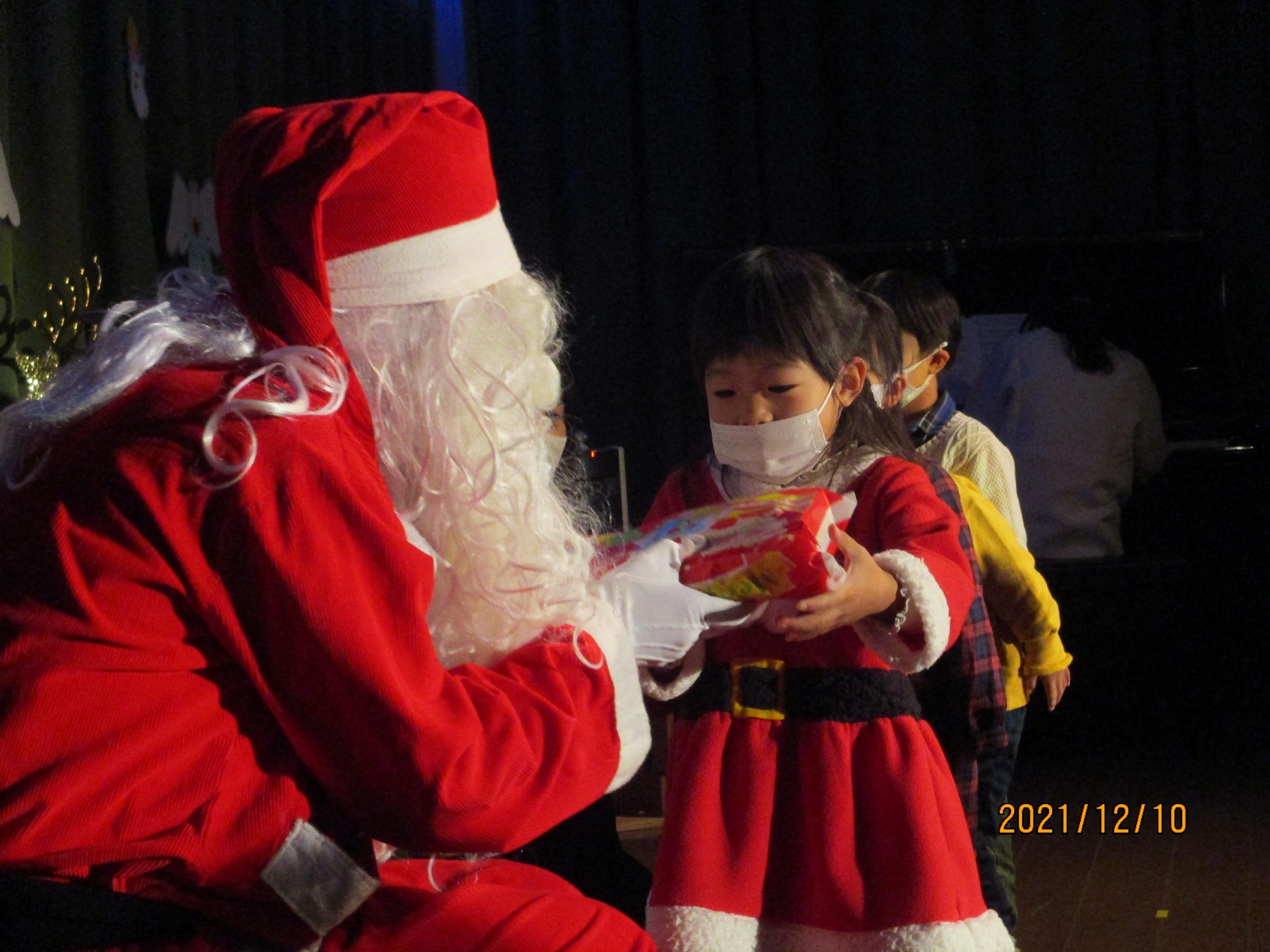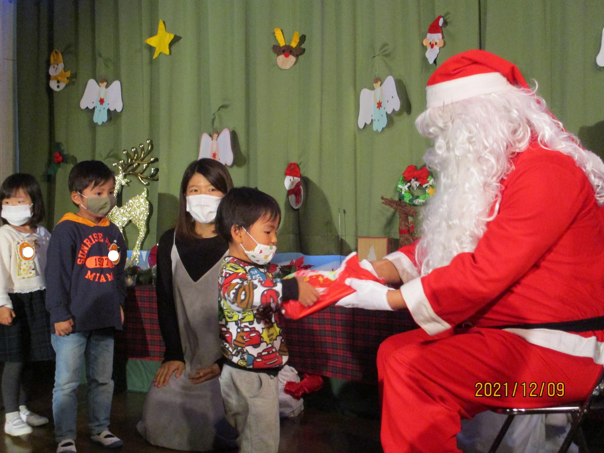 サンタさんから直接プレゼントをもらって、少し緊張気味の子ども達。