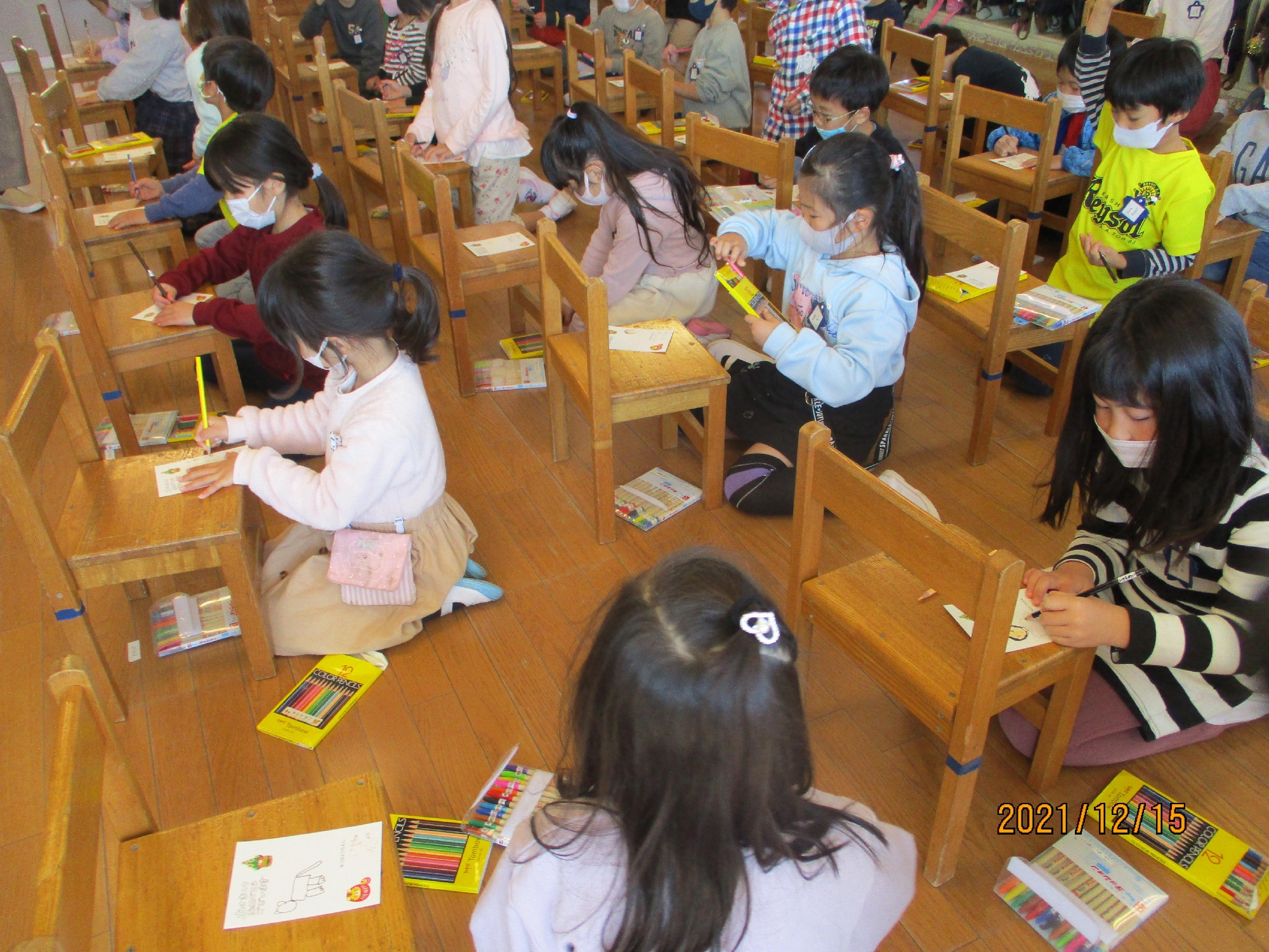 お家の人に向けて「来年も一年よろしくね」と気持ちを込めて、ハガキを書きました。