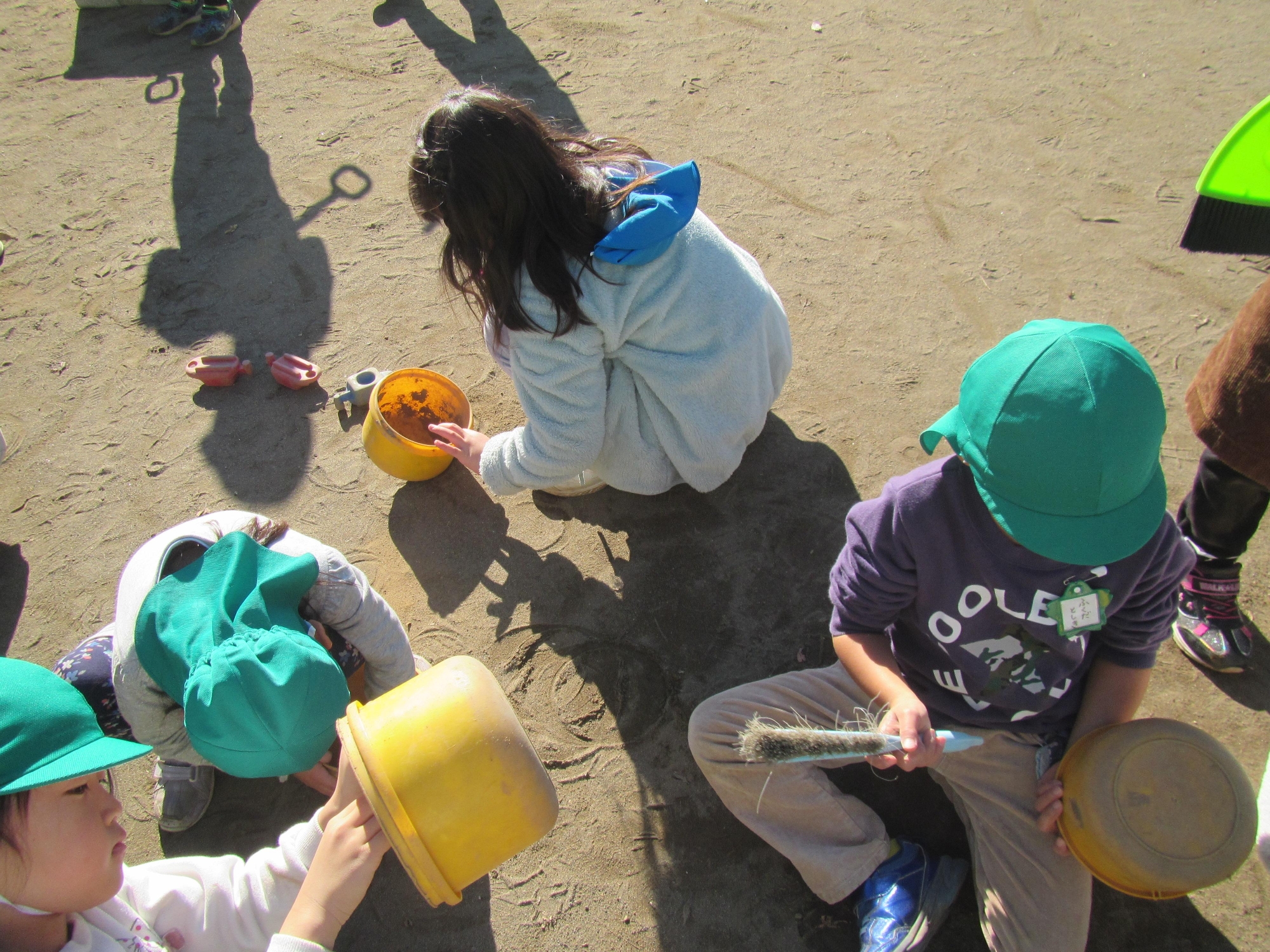 ダイナミックに砂場で遊ぶのは゛年長組“です。