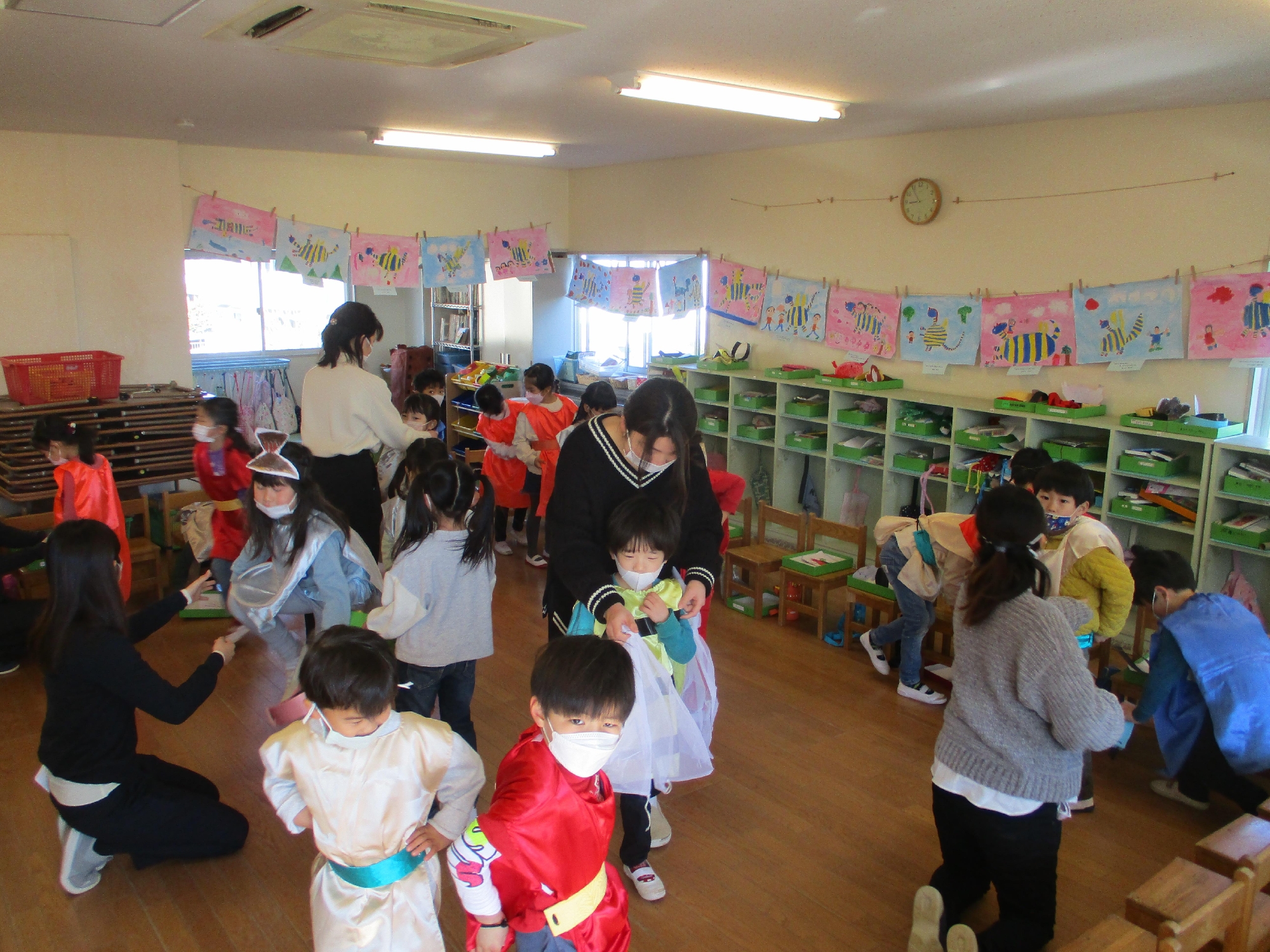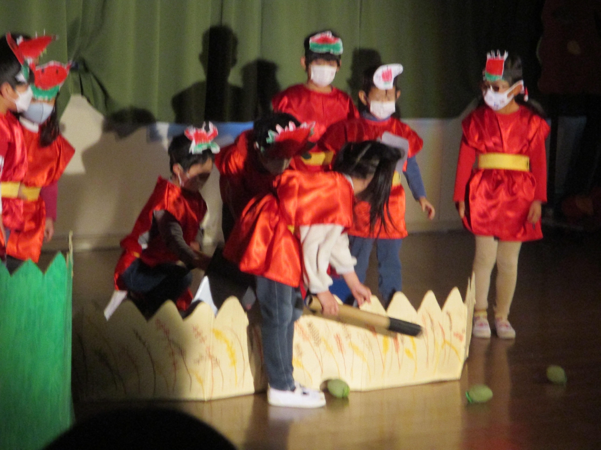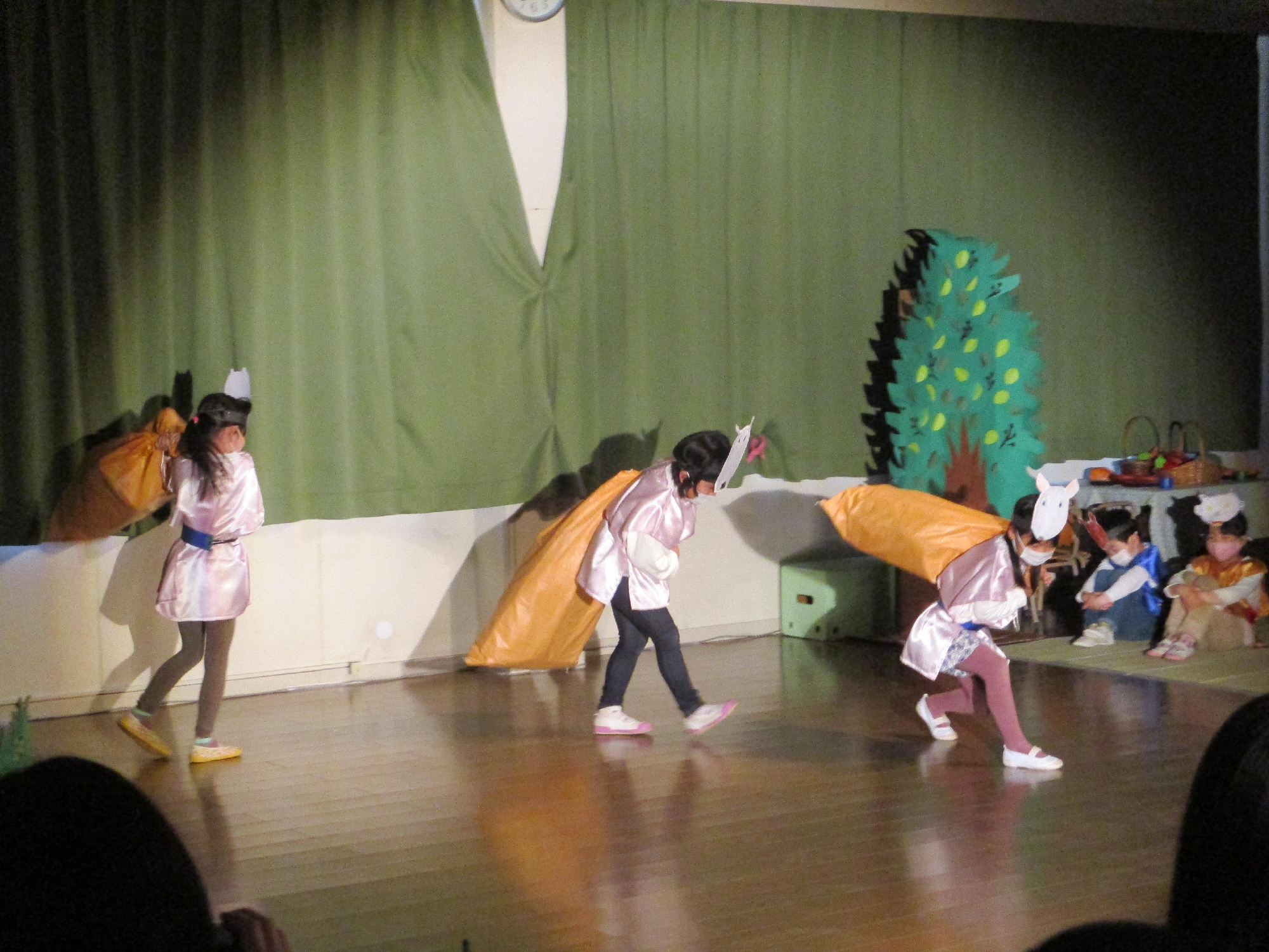 お話の世界を楽しむことはもちろん。同じクラスではなく、隣のクラスの子の意見を受け入れたり、友だちの姿を認めたり、皆でつくっていく劇の楽しさや面白さも感じられたと思います。