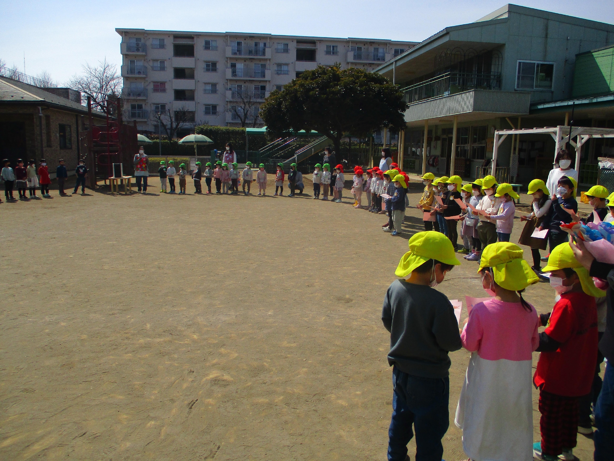 年少・年中組は、お世話になった年長組へ「ありがとう」「がんばってね」の気持ちを・・・