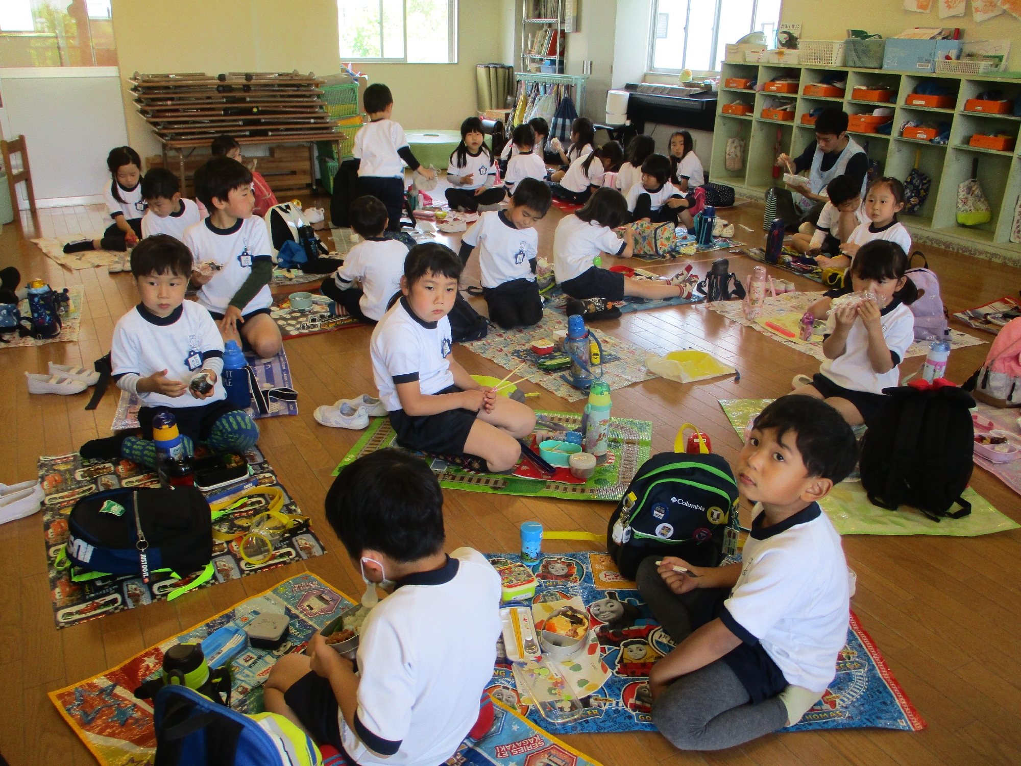 公園で遊んだ後は、幼稚園へ戻りお弁当を食べました。