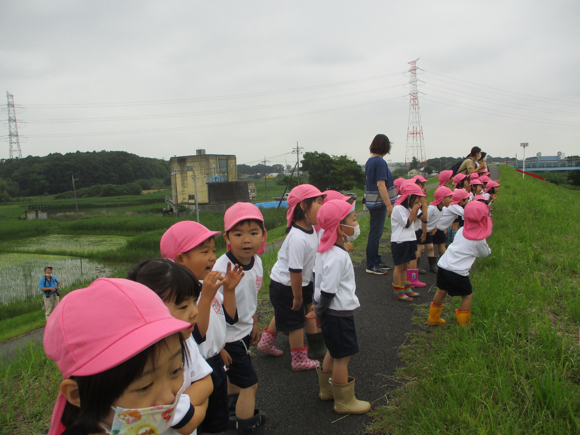 じゃがいも堀りをした後は、近くの土手に散歩に行きました。