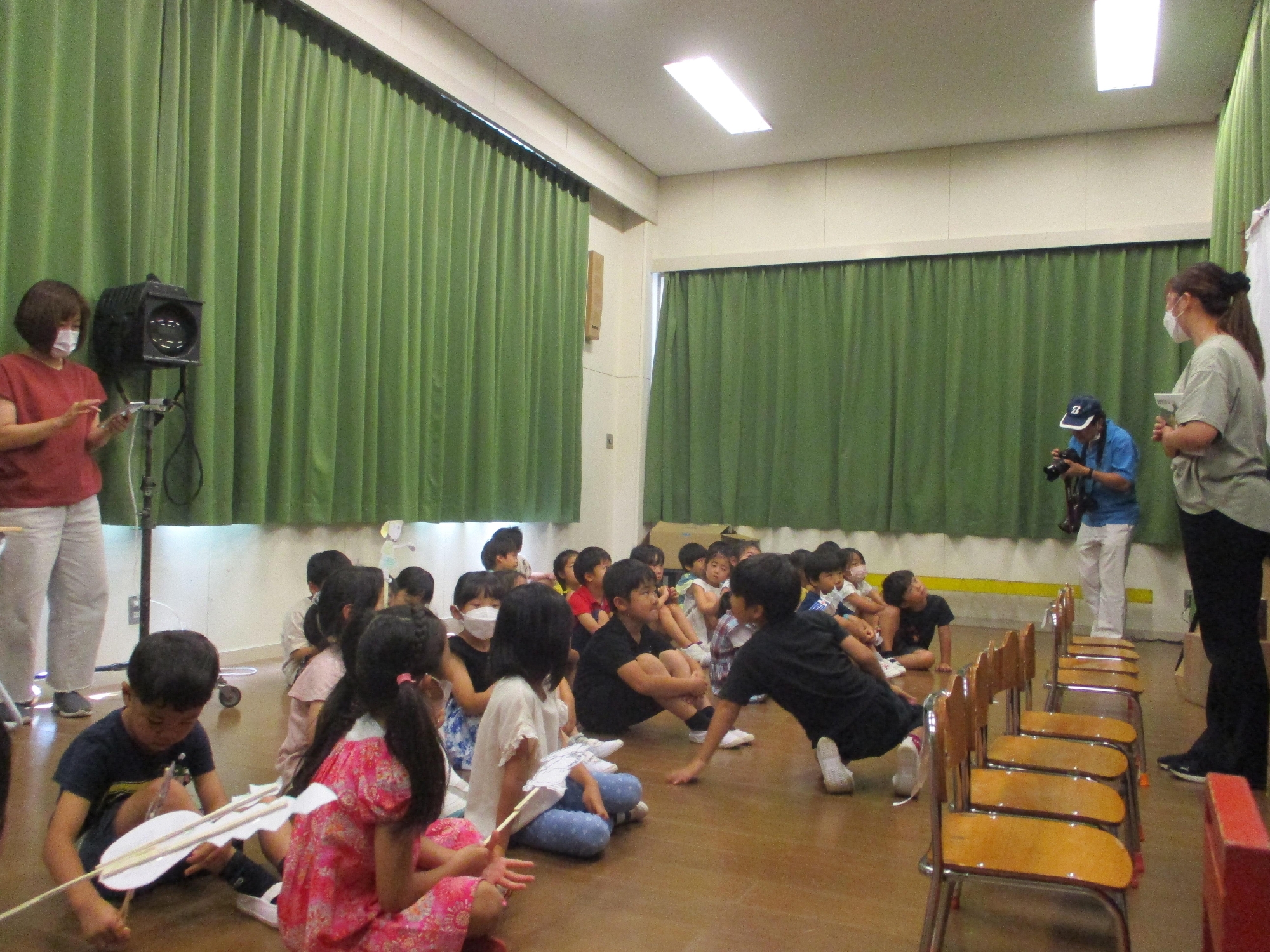 自分達で作ったペープサートをもとにクラスのみんなでつくったお話