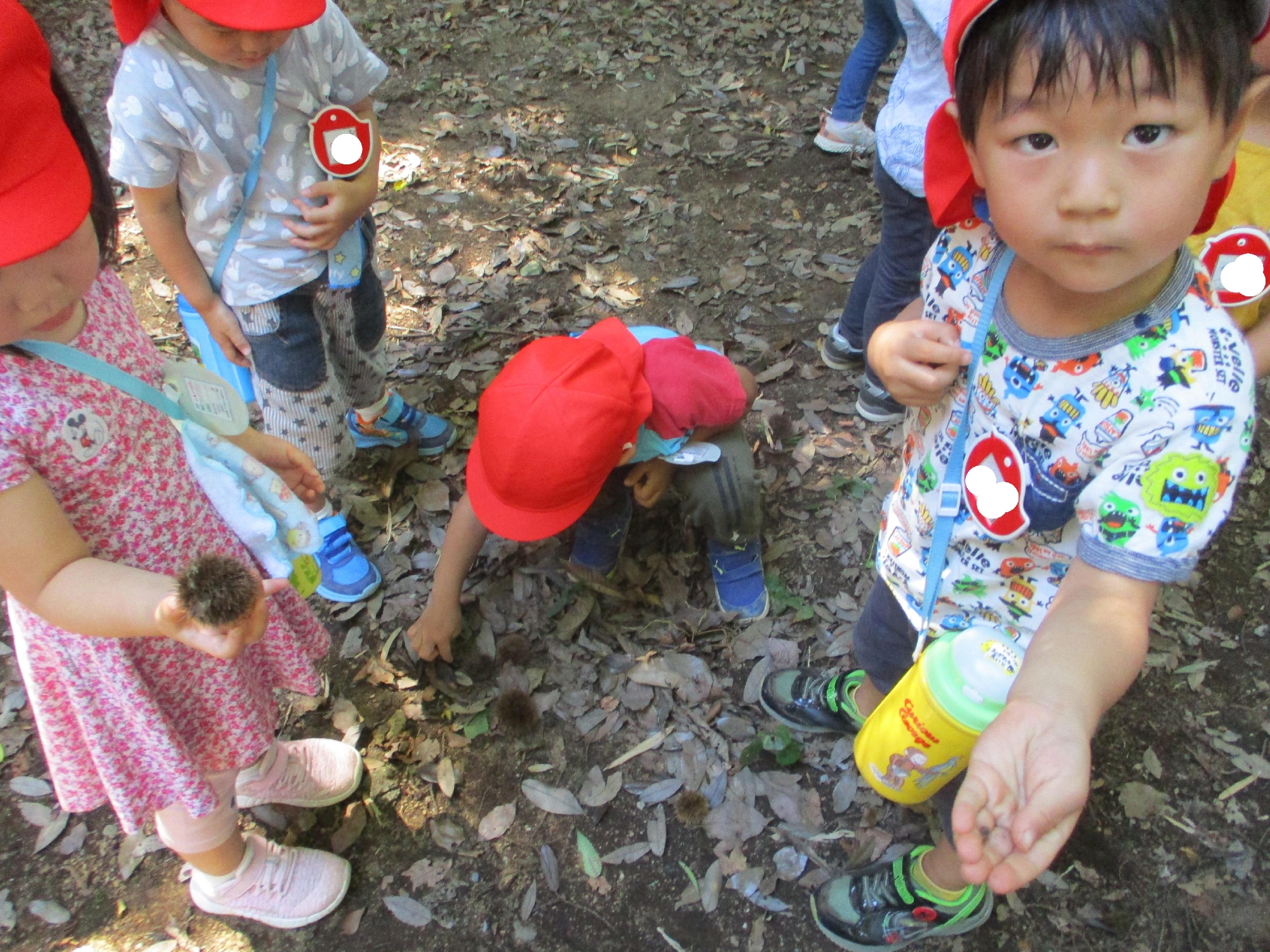 栗やどんぐりなど秋らしい自然に触れることができました。