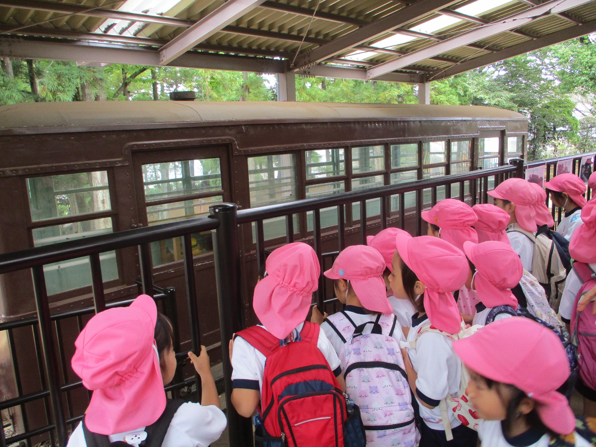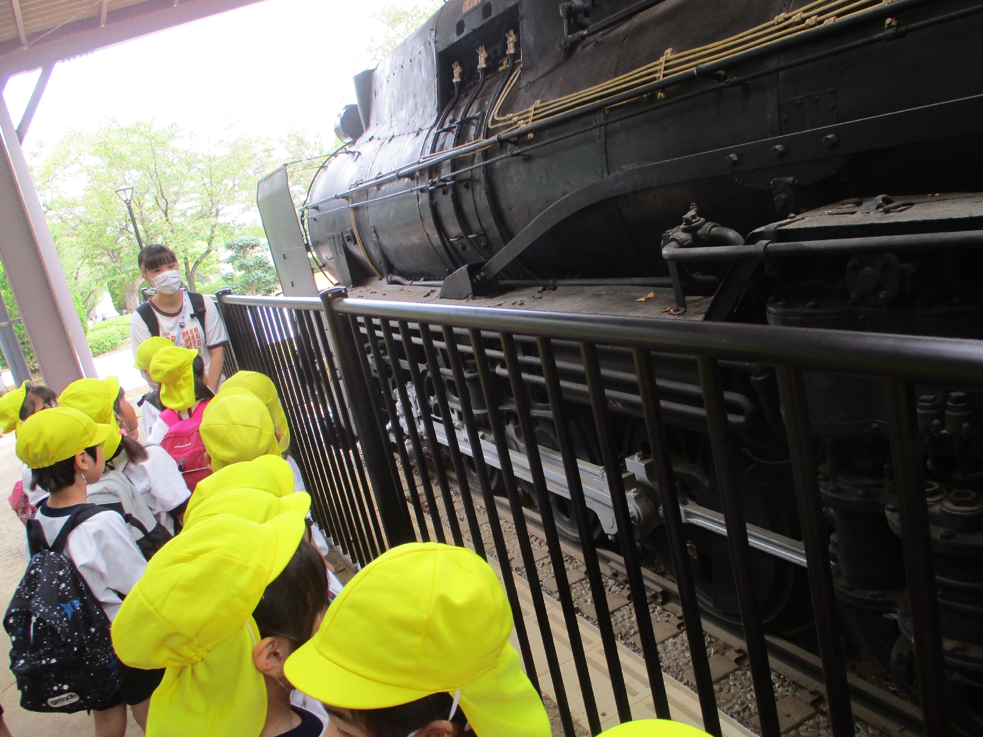 まずは、皆が楽しみにしていたSL(蒸気機関車)。初めて見る子もいて、「大きい!」、「ここが運転手さんが乗るところだよね」とクラスで見た絵本に書いていたことを思い出している様子もありました♪