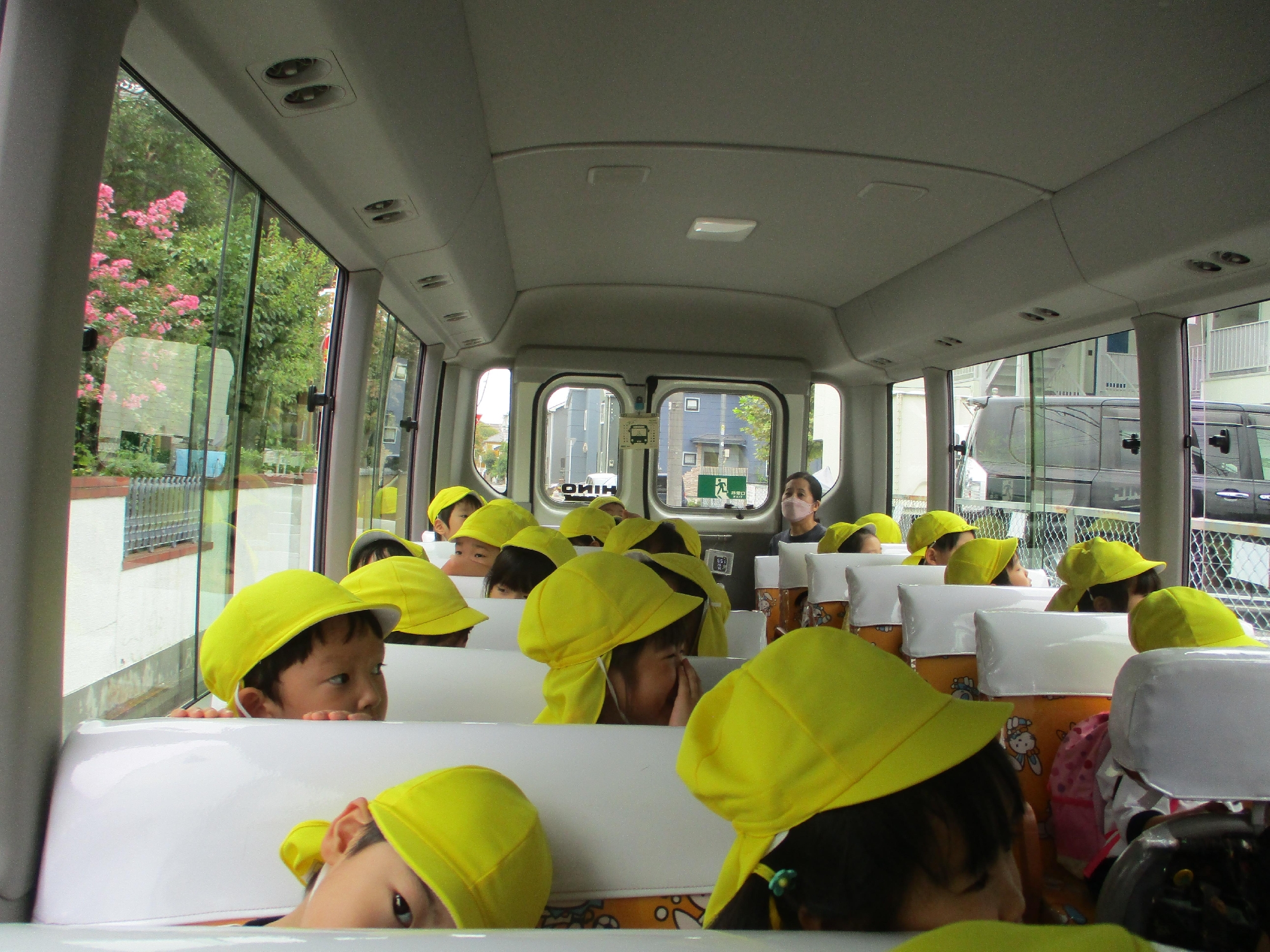 9月13日にらいおん組、15日にきりん組が流山総合運動公園に行きました。バスに乗っていざ出発!