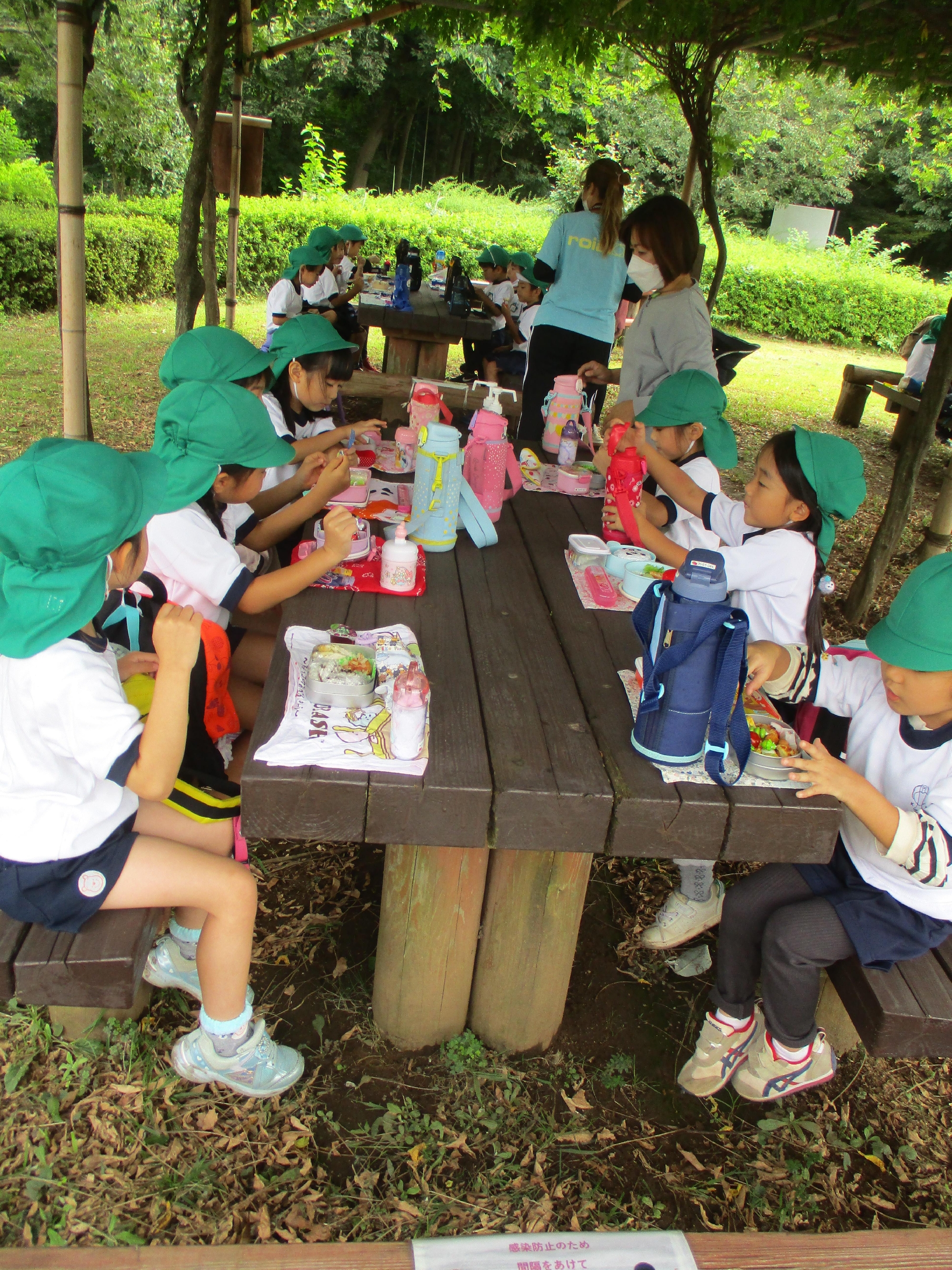 お昼はみんなでベンチに座り、良い天気の中ご飯を食べる事ができました。