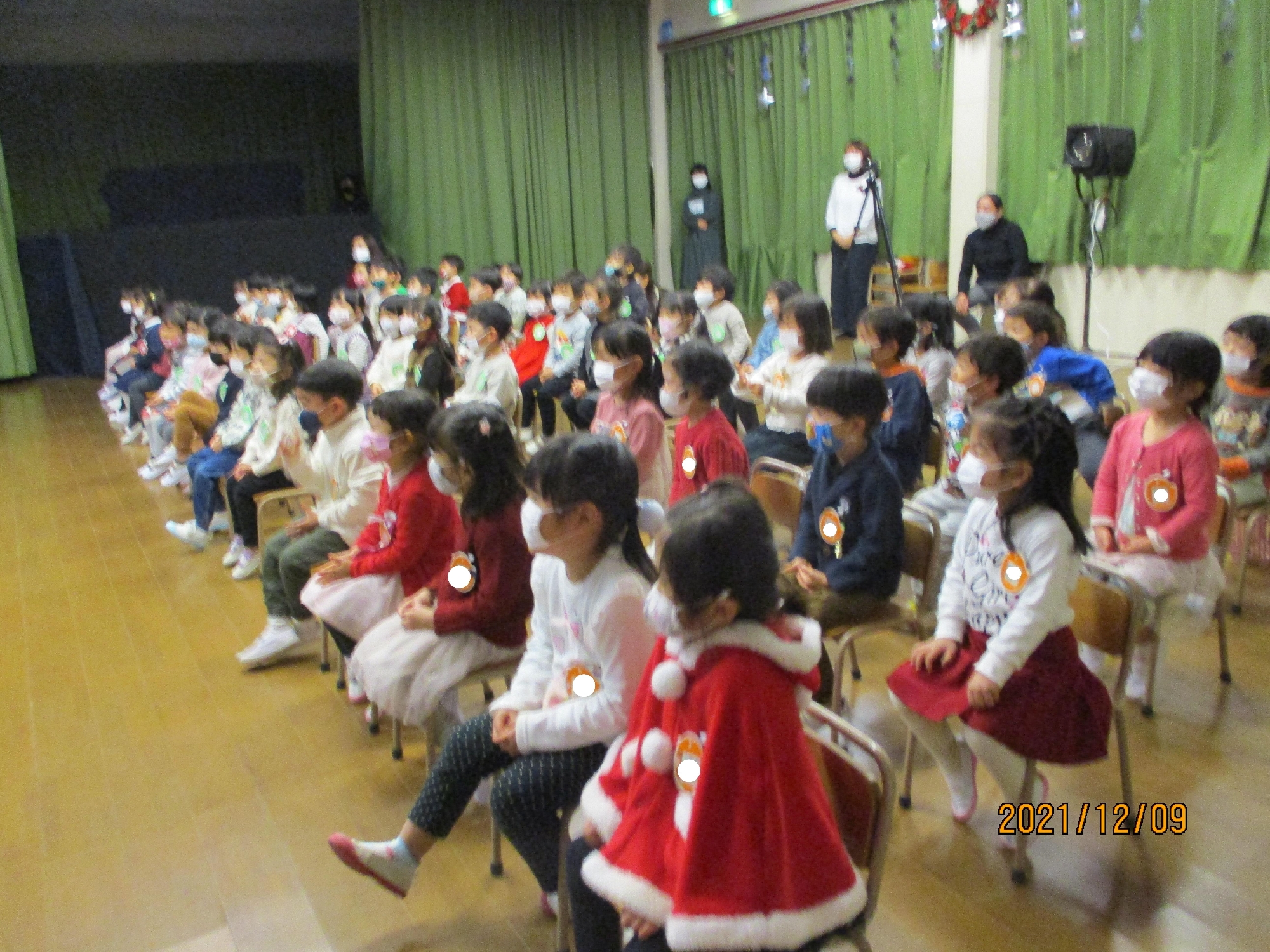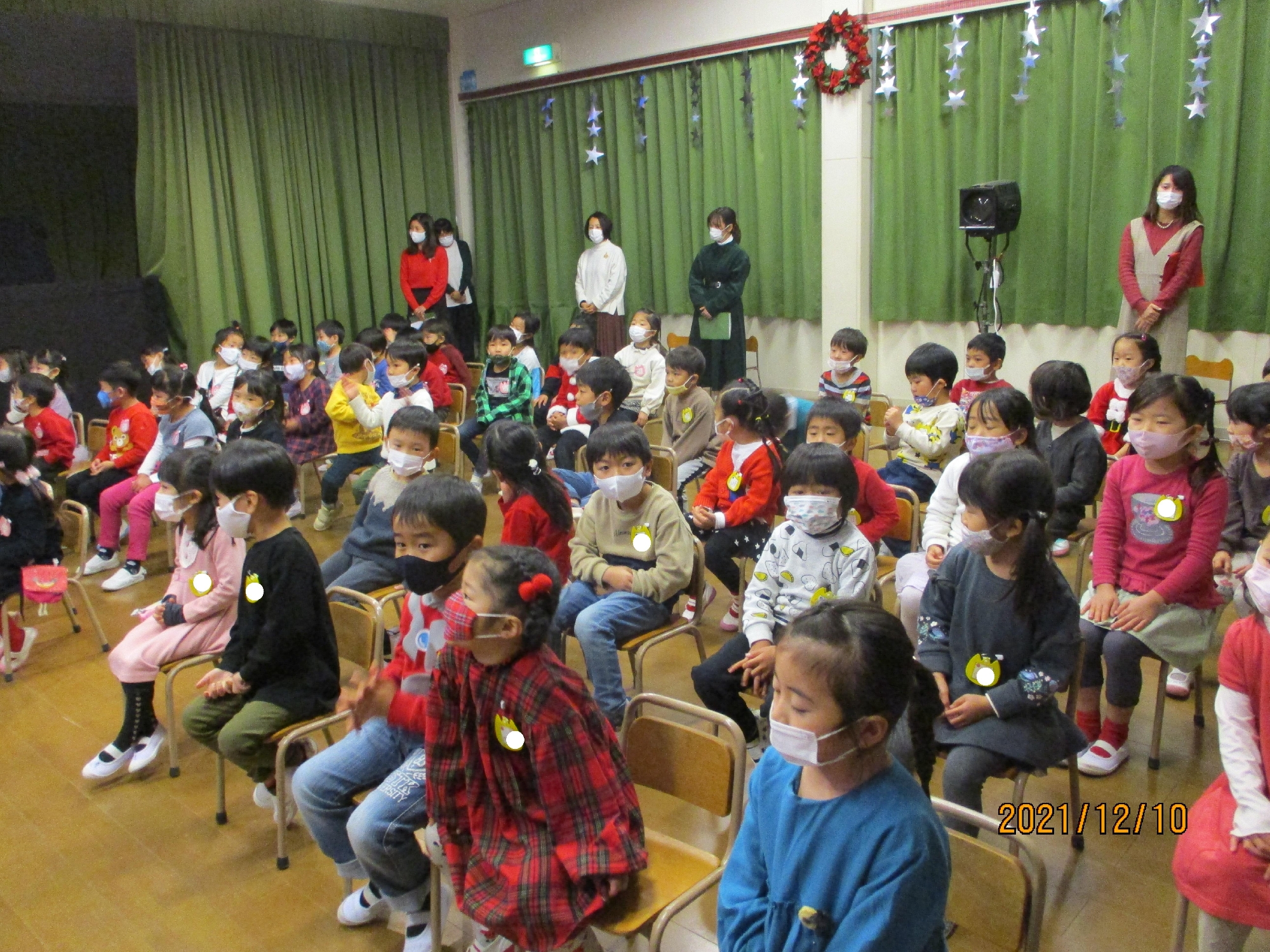 12/7(火)年長組、12/9(木)年少組、12/10(金)年中組がホールでクリスマス会をしました。