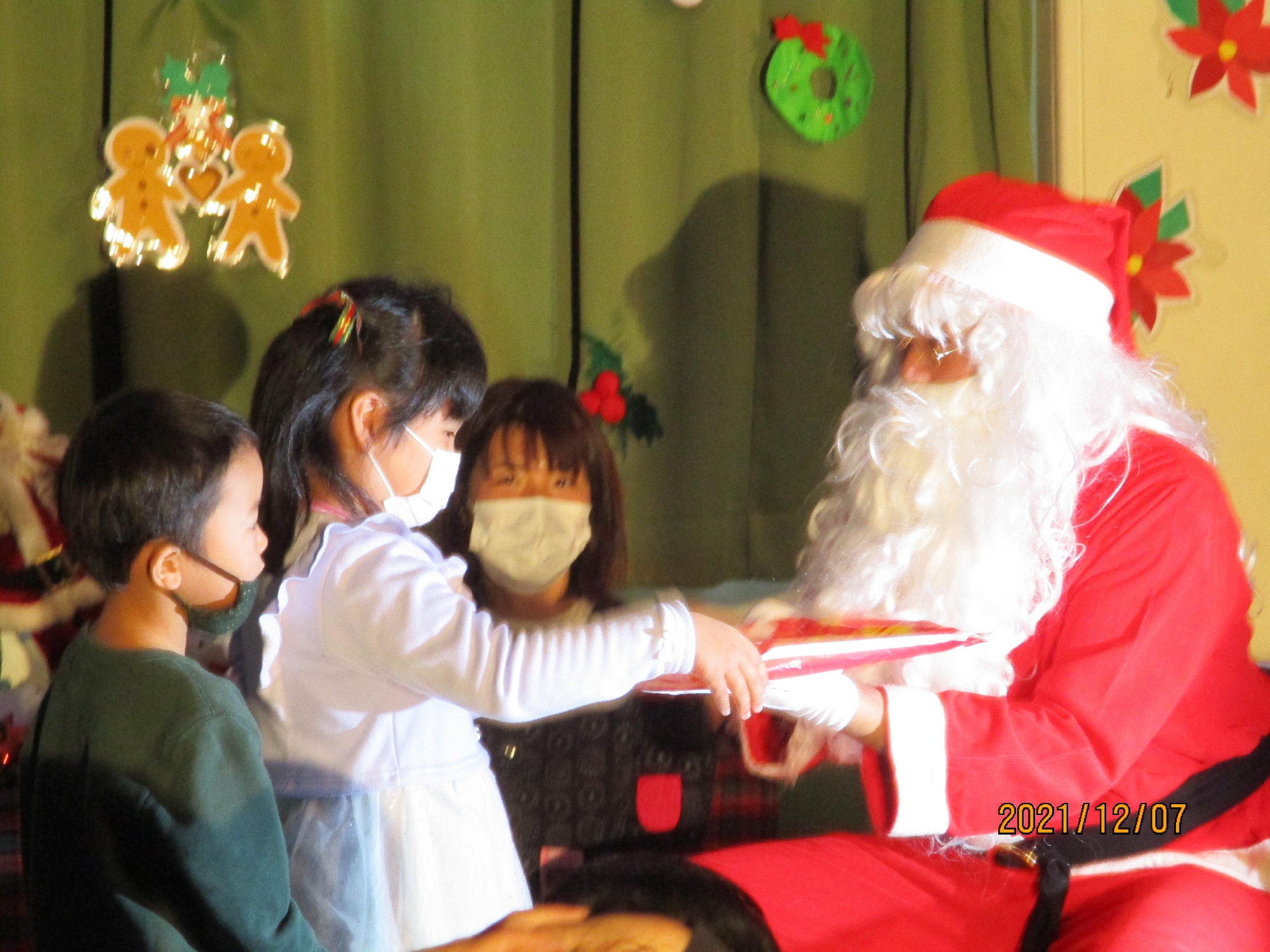 サンタさんから直接プレゼントをもらって、少し緊張気味の子ども達。