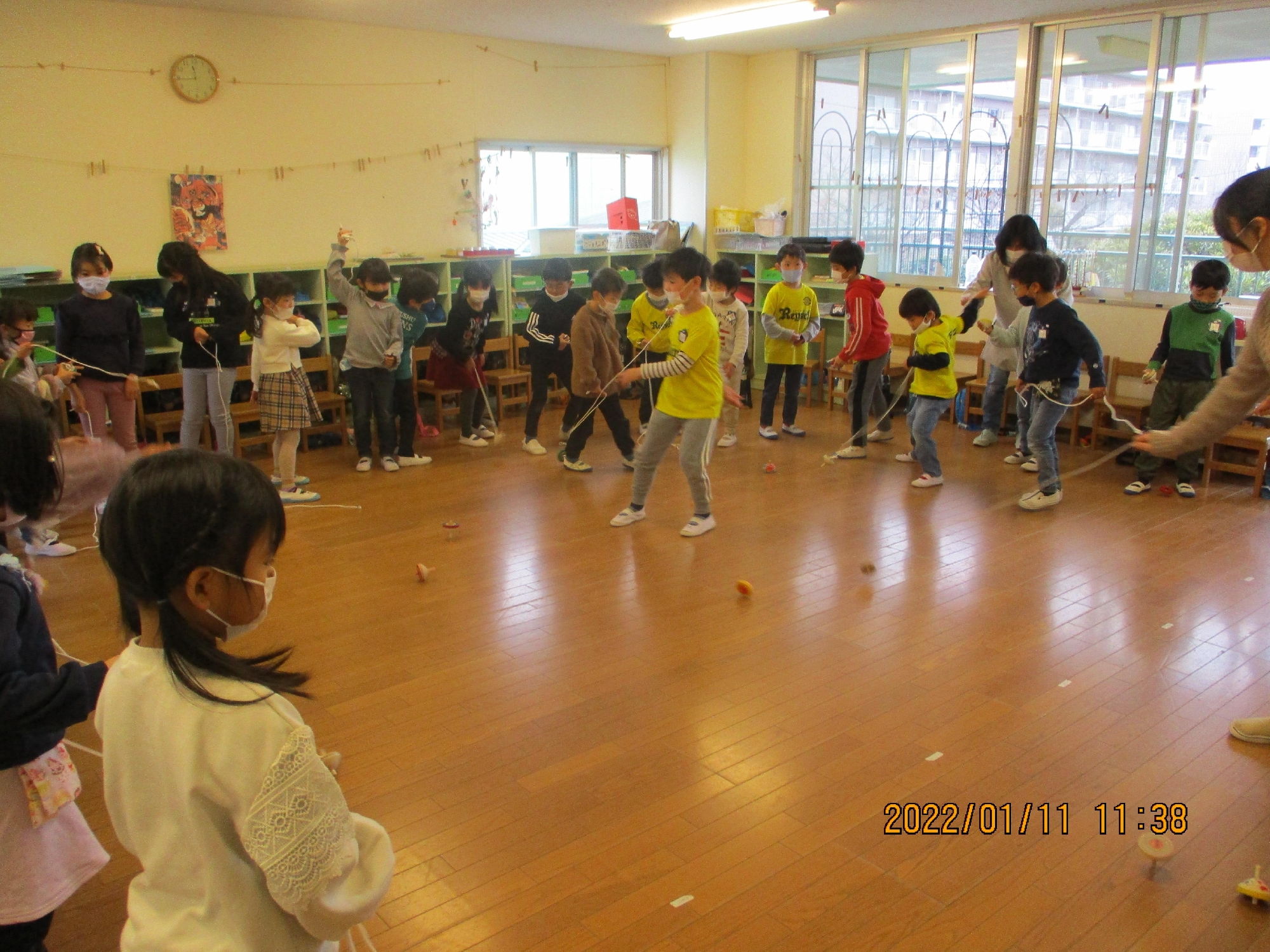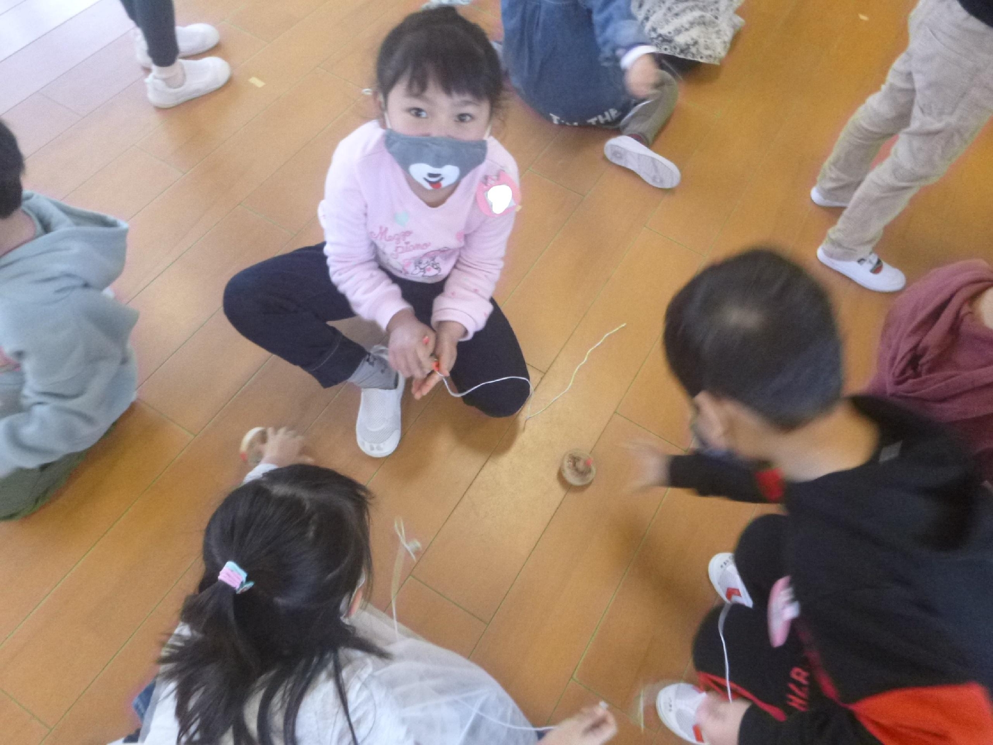 幼稚園に持ってくると、自分のコマを紹介したり、友達のコマの回っている様子を見て「きれいだね」と話している様子が見られましたよ(^^)
