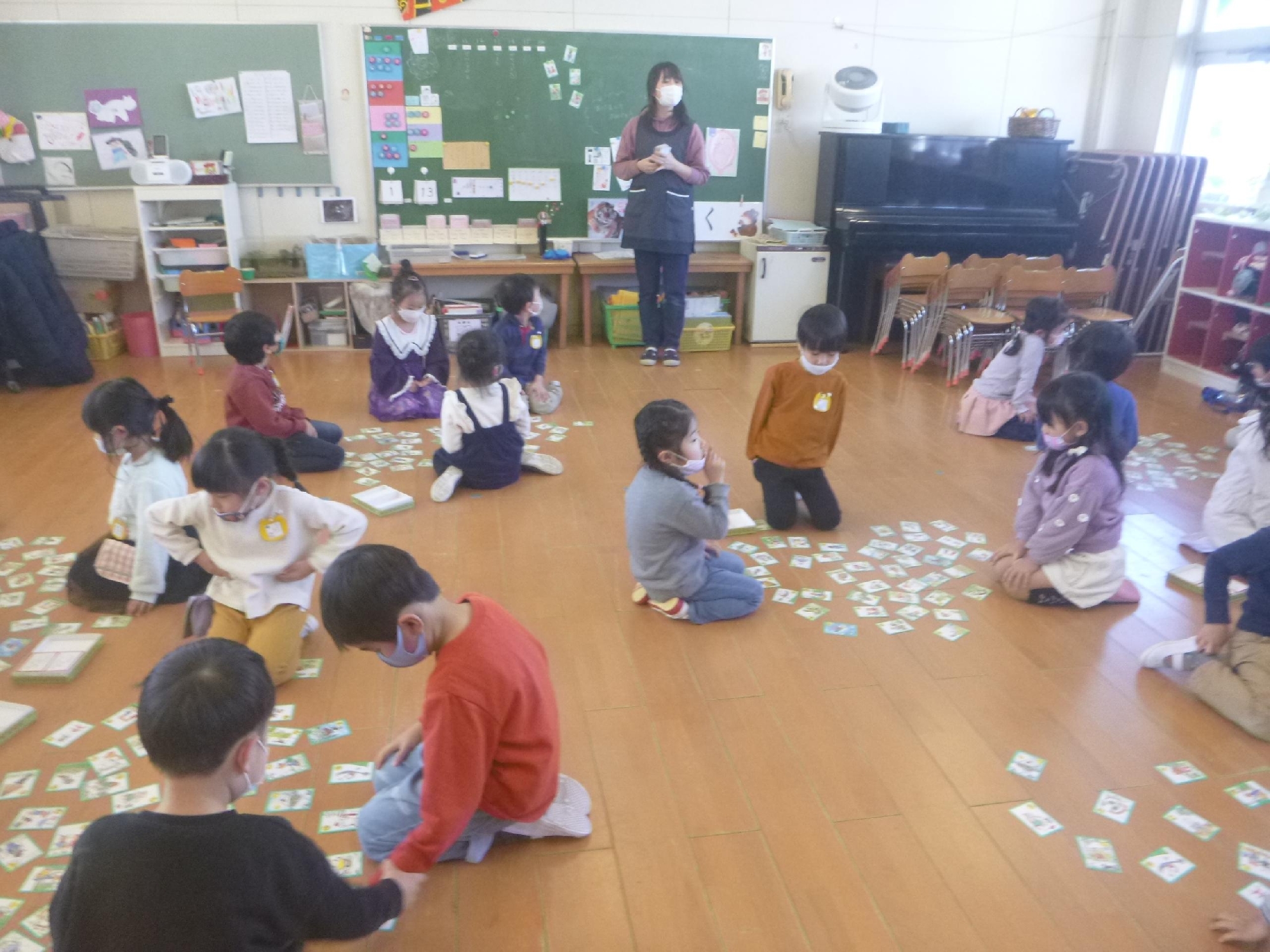 年中組では、正月遊びで”かるた”も楽しんでいます。