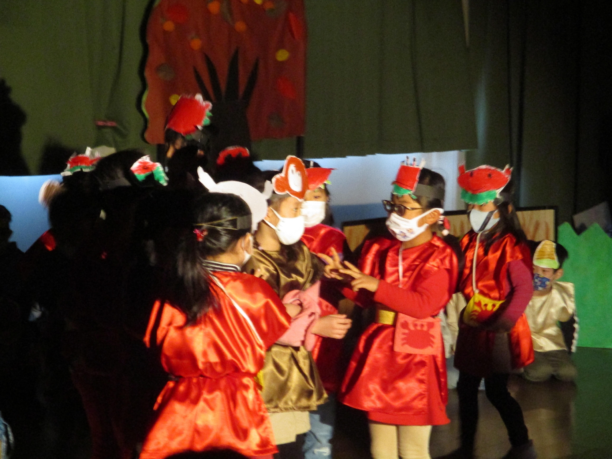 お話の世界を楽しむことはもちろん。同じクラスではなく、隣のクラスの子の意見を受け入れたり、友だちの姿を認めたり、皆でつくっていく劇の楽しさや面白さも感じられたと思います。