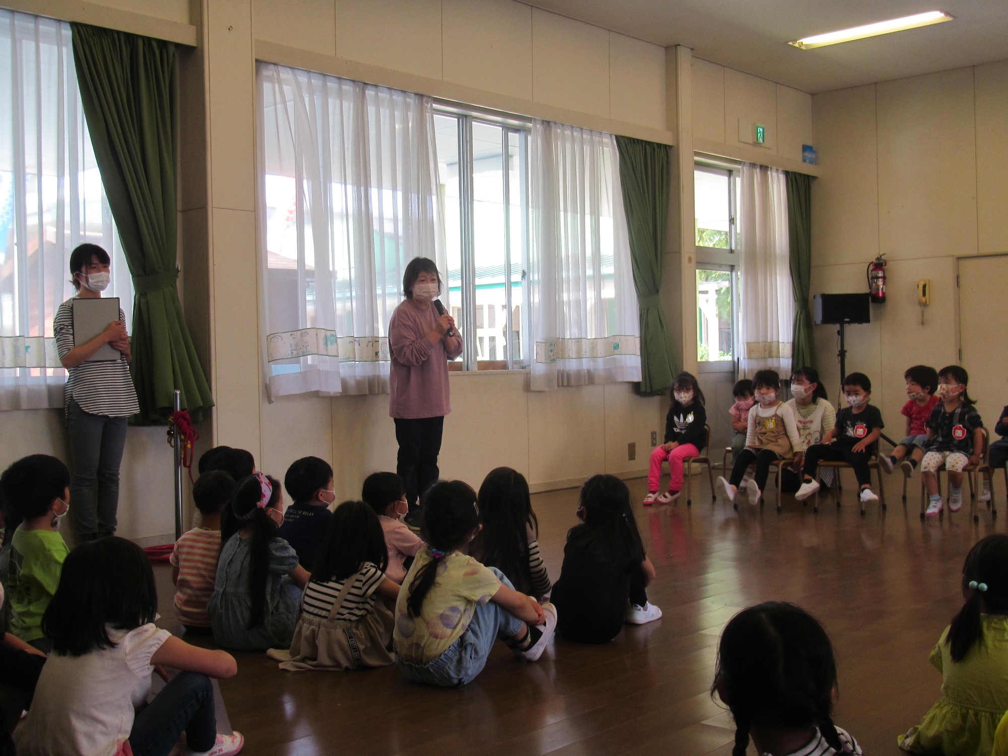 「まつばようちえんへようこそ」とお話をしてくれました。