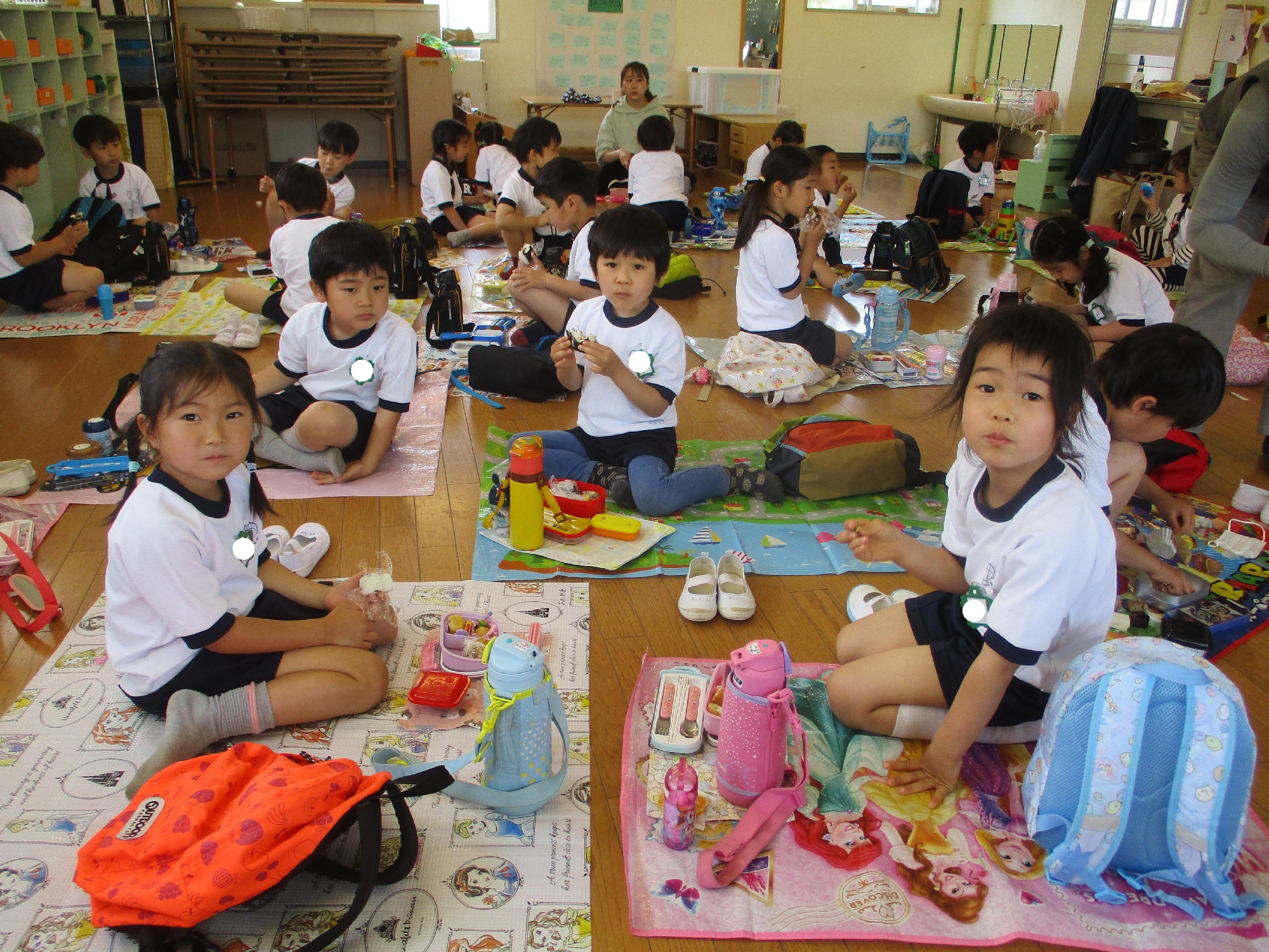 公園で遊んだ後は、幼稚園へ戻りお弁当を食べました。