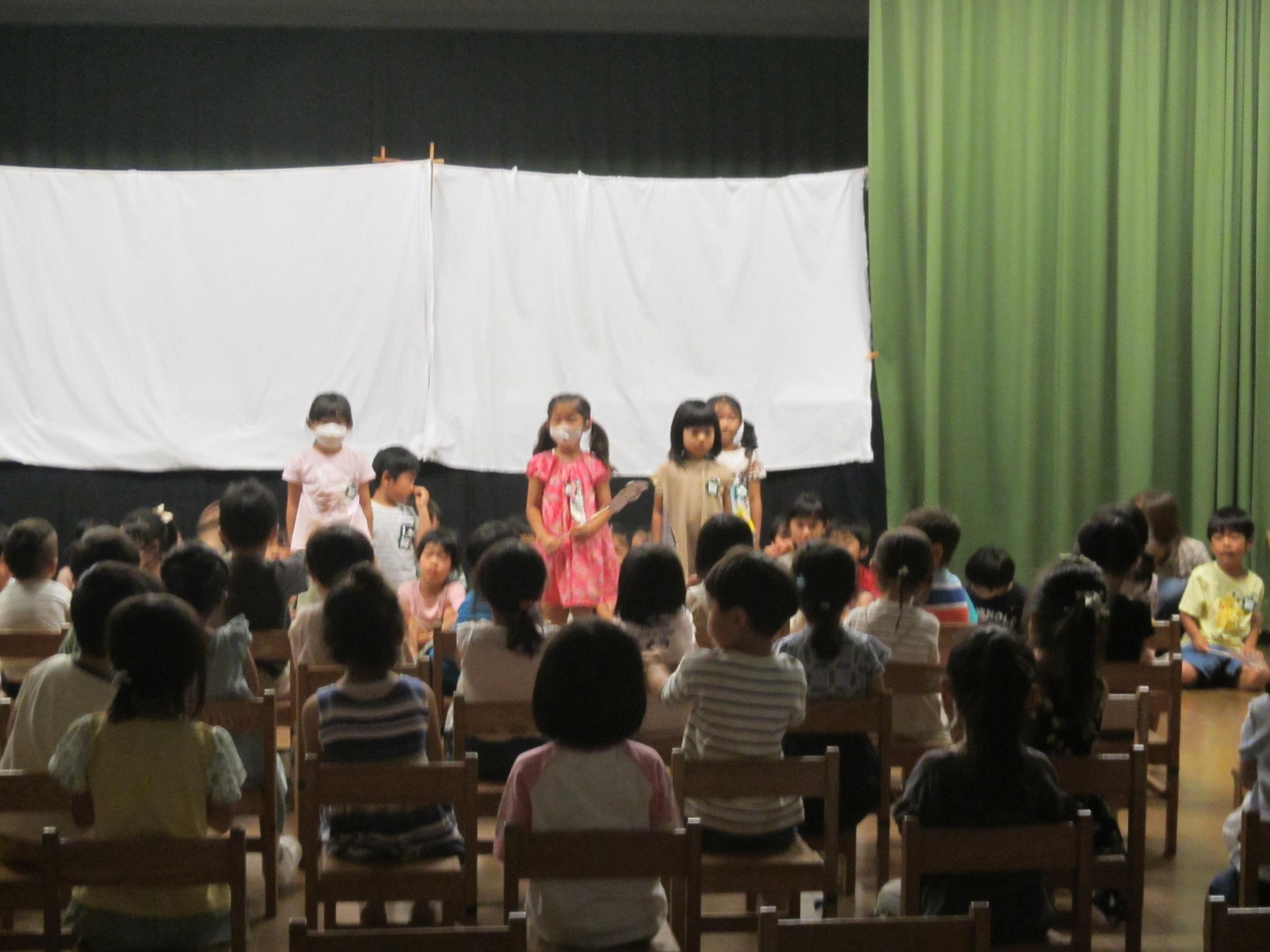 自分達で作ったペープサートをもとにクラスのみんなでつくったお話