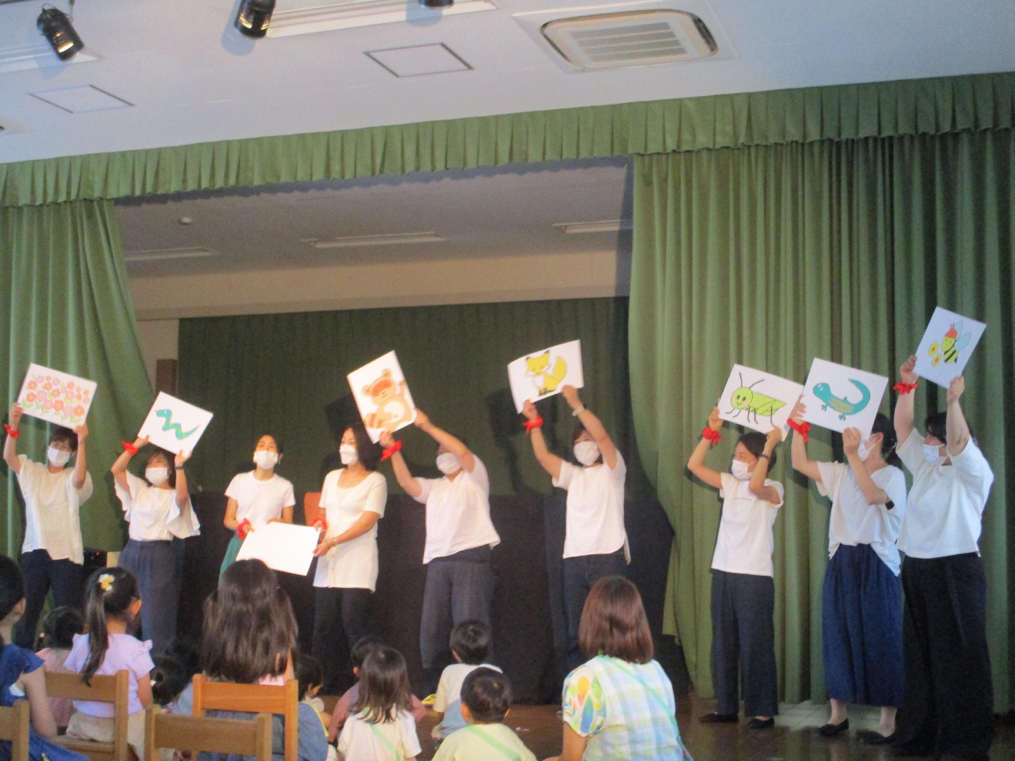お母さんたちが、うたに合わせて動物の絵も見せながらうたってくれましたよ。