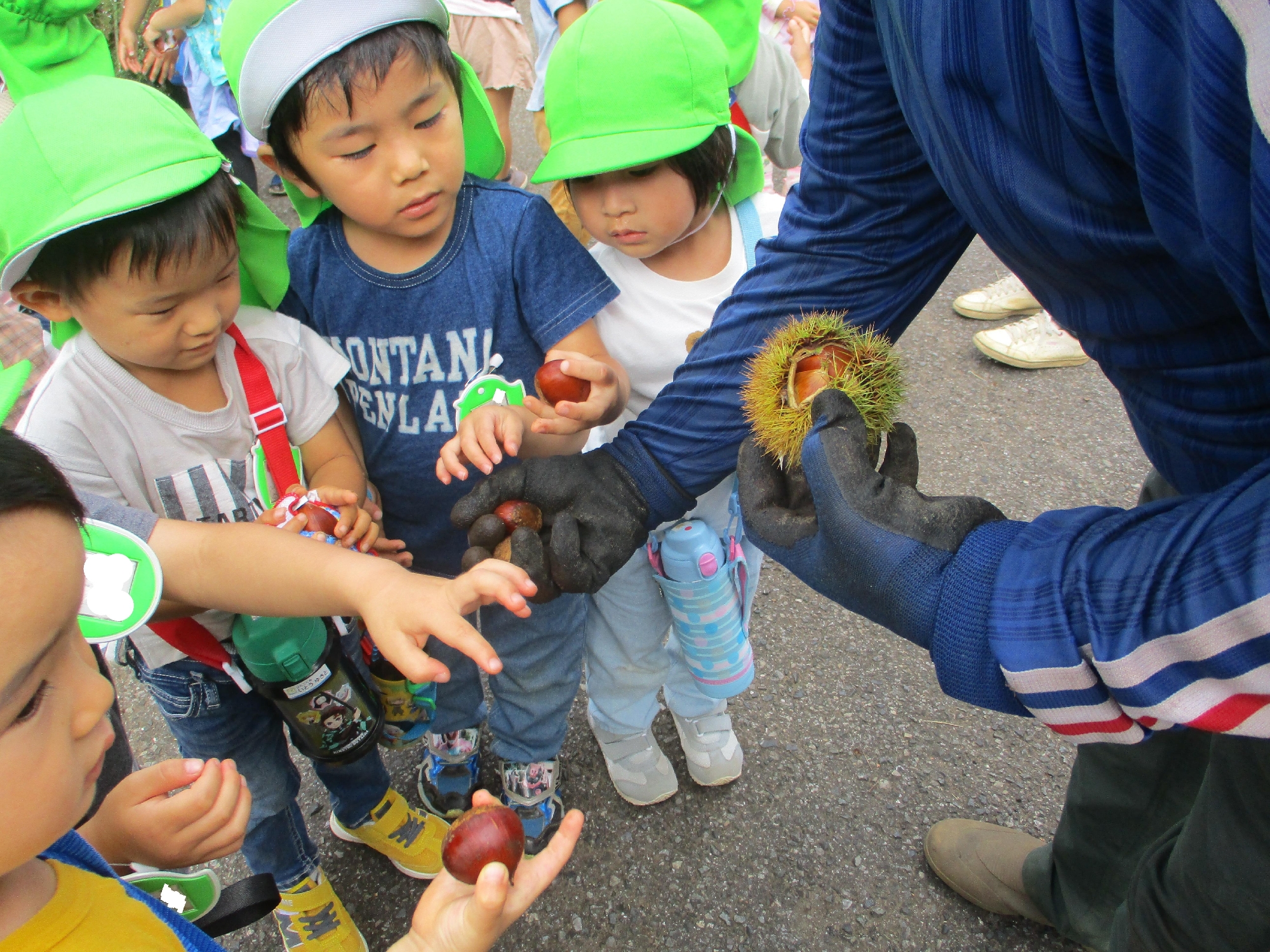栗やどんぐりなど秋らしい自然に触れることができました。