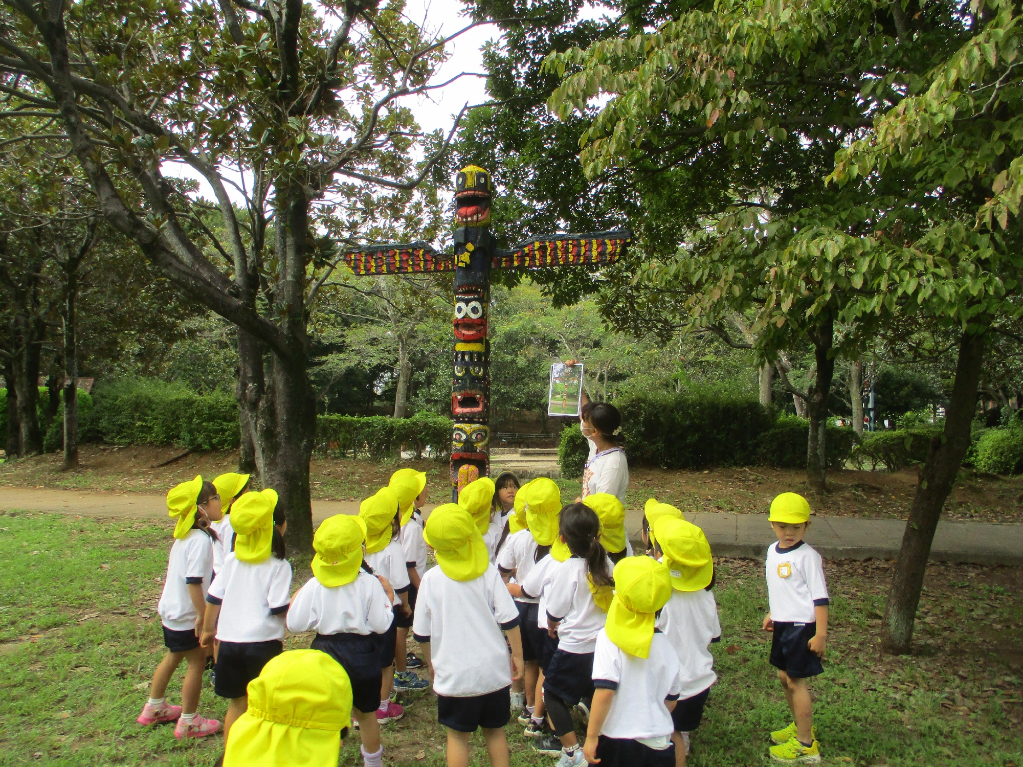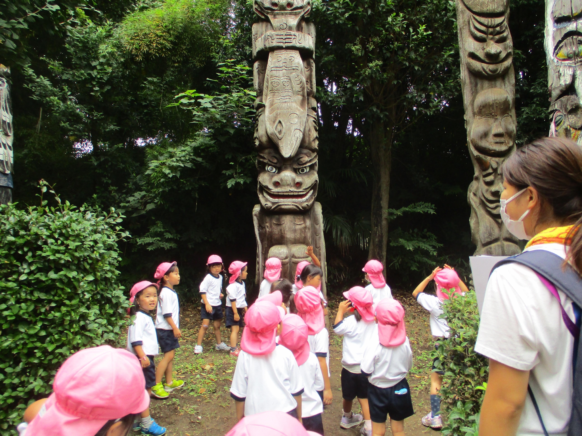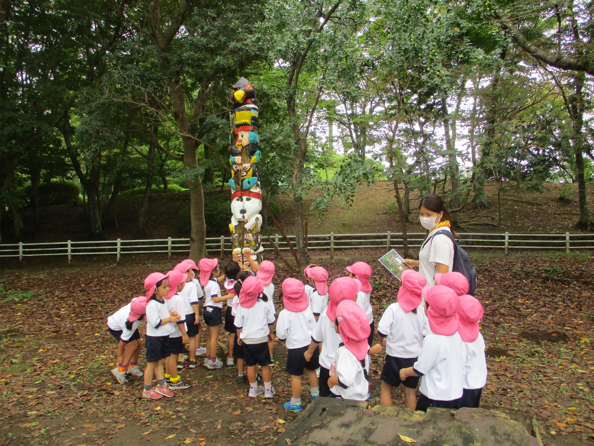 色々な顔や模様のトーテムポールがあって「あっちにある!」と探すのが得意な子ども達。「おもしろい顔~!」、「口に手入れたらどうなる?入れてみて!」とそれぞれのトーテムポールを楽しみました(^^