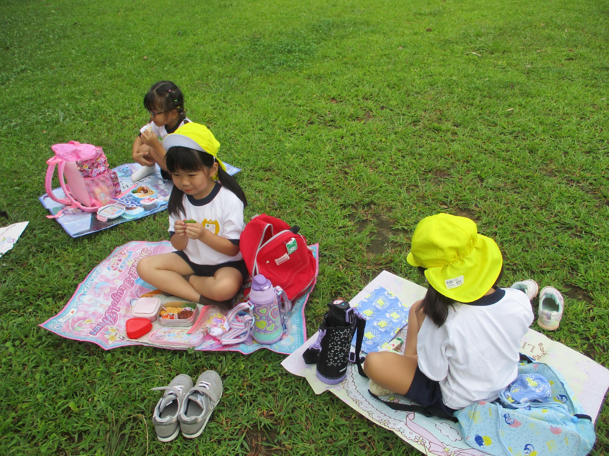 たくさん遊んだので、お腹がペコペコ!「見て~!今日はサンドウィッチ!」など、お家の人が作ってくれたお弁当をみんなで楽しく食べました!いつもとは違う場所で楽しくお弁当が食べる事が出来て、みんな大満足でしたよ。