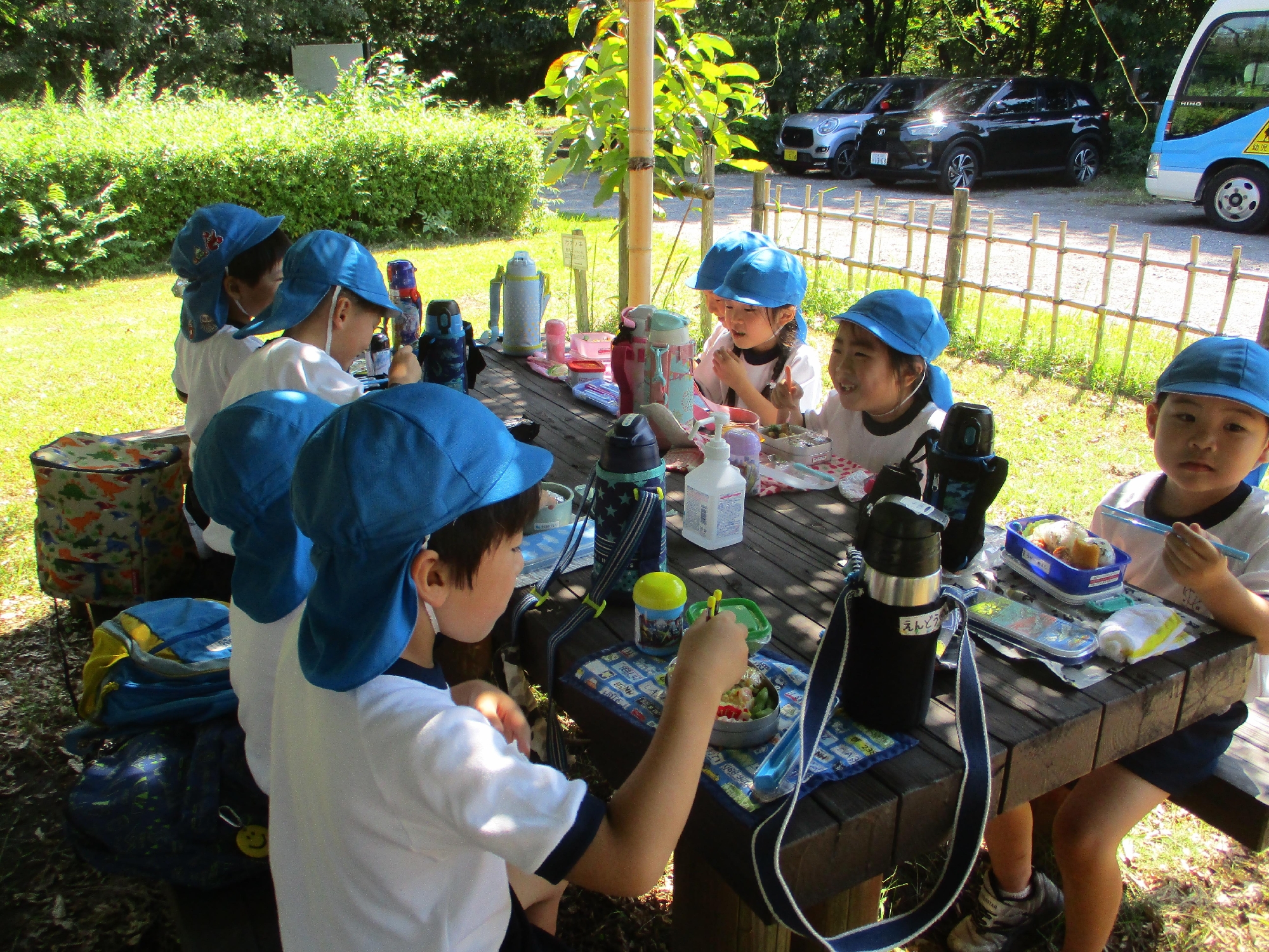 お昼はみんなでベンチに座り、良い天気の中ご飯を食べる事ができました。